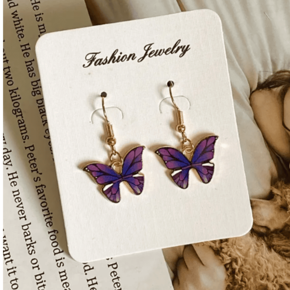 עגילים פרפר סגול
